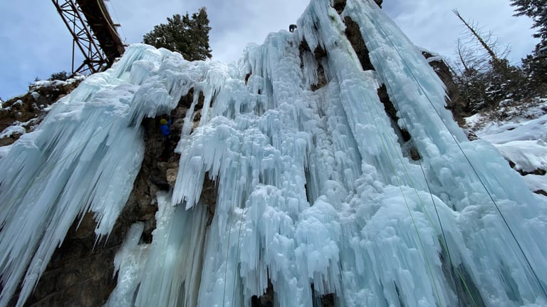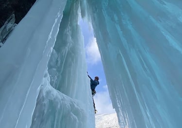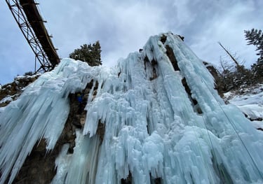 Join us for a day of custom guided ice climbing to learn the skills of ice climbing or take on fun and challenging climbs!
