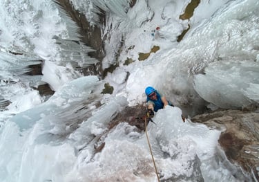 The land of eastern giants. Routes here are some of the biggest and hardest pure ice climbs around. Prior experience required.